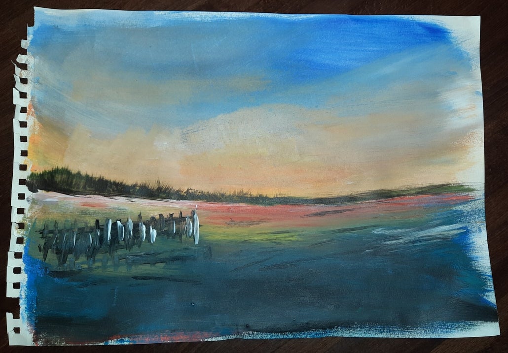 Mindestens genauso spannend ist es, Fotos von anderen Menschen umzusetzen und so fremden Orten und Erlebnissen nachzuspüren und eine eigene Assoziation dazu zu entwickeln. Wie hier bei einer Impression der walisischen Küste.